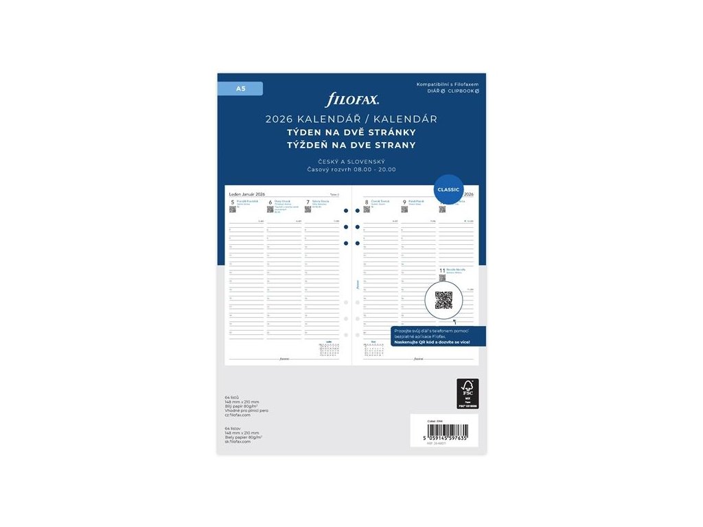 Náhradní náplň diáře Filofax - A5, týden na 2 strany, rok 2026