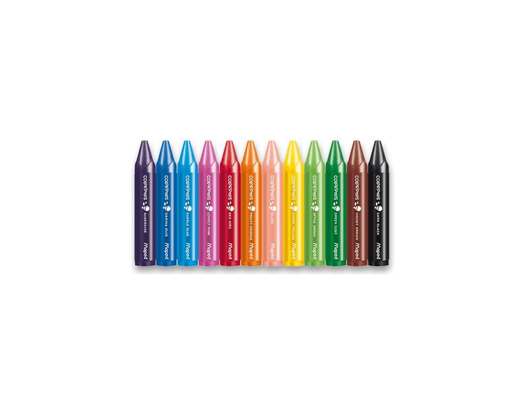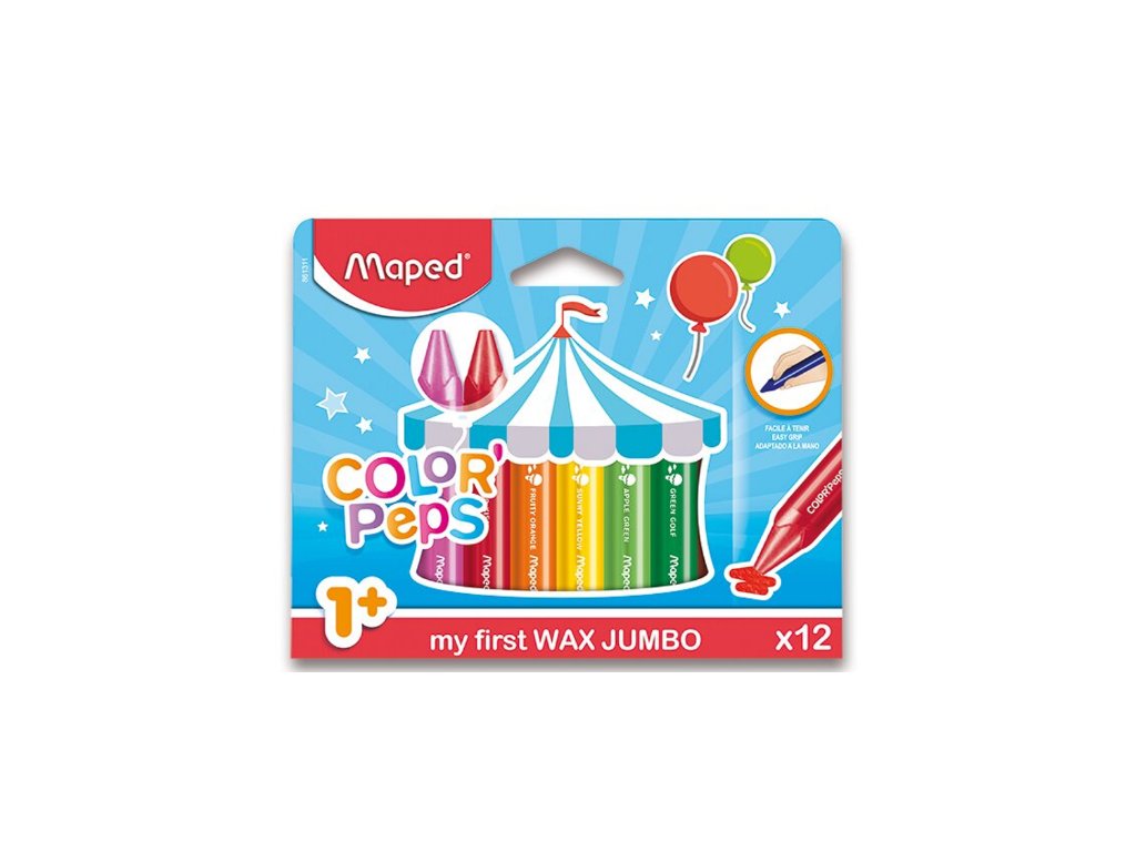 Voskovky s trojhranným tělem. Jasné barvy, měkký vosk. Nezanechávají stopy na rukou, tělo je kryto papírem. V maxi velikosti pro jednodušší držení. Průměr voskovky: 13 mm. Vhodné pro děti: 1+.