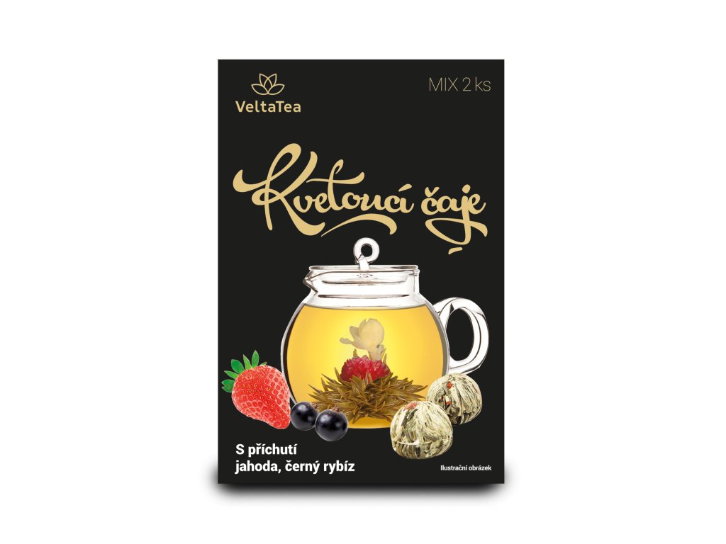 Zelené kvetoucí čaje s příchutí jahoda a černý rybíz